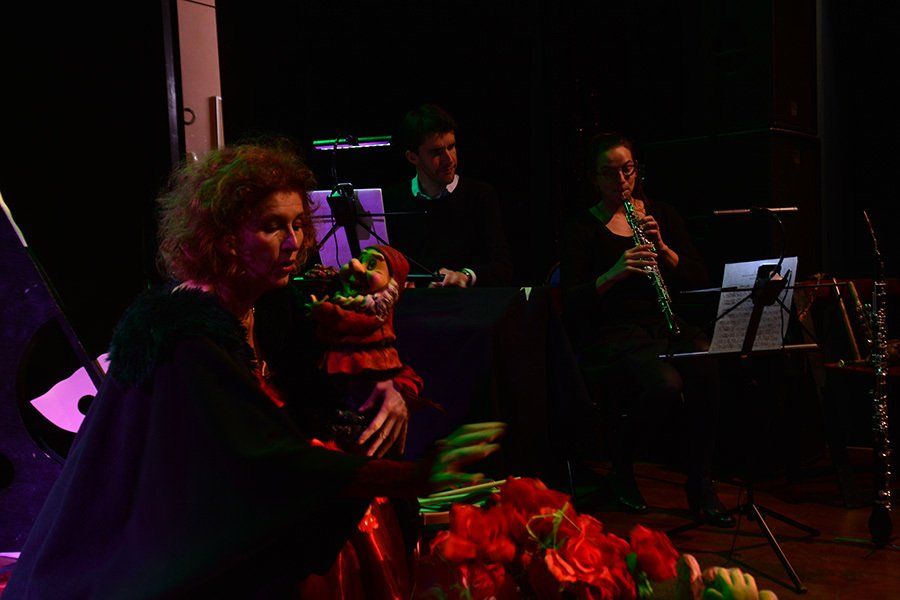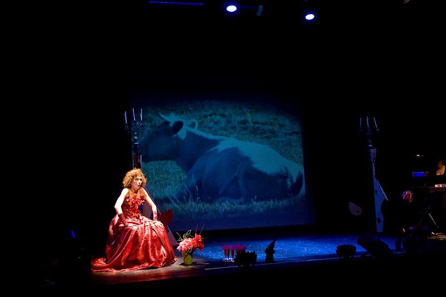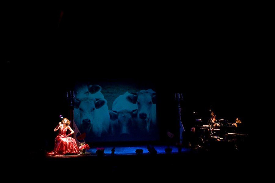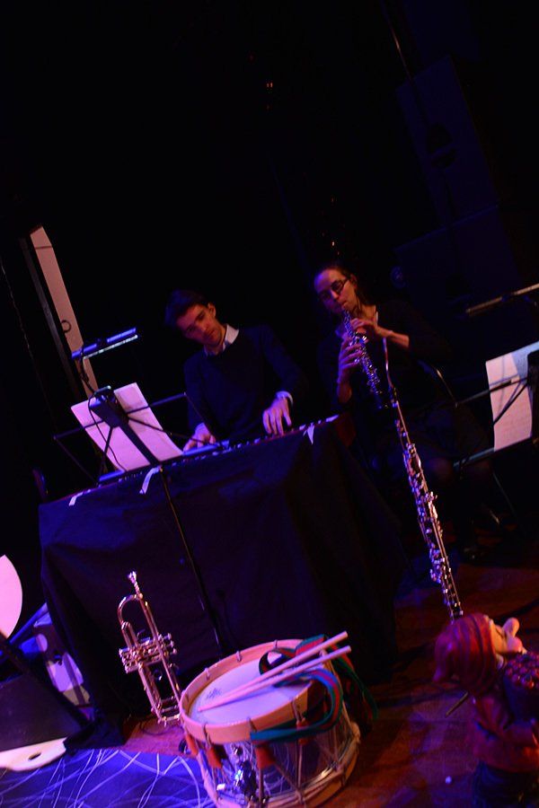 Projections, musique en scène : Piano, hautbois, cor anglais, xylophone tambour…